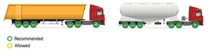 - ينطبق على جميع مواقع العجلات في ظروف الطرق المختلطة مع النقل الثقيل واستقرار قيادة جيد.
